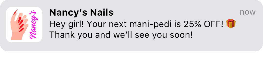 Send unlimited appointment reminders, exclusive offers, and updates directly to your clients' phones. Keep them engaged and coming back.