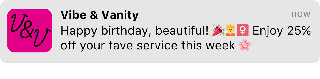 Unlimited push notifications for your spa or salon.